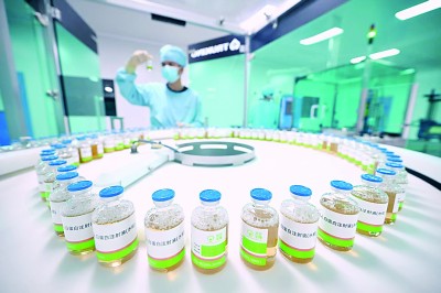 湖北武汉一家生物科技公司内,技术人员正在进行重组人白蛋白注射液(水稻)研制。张璨龙摄/光明图片